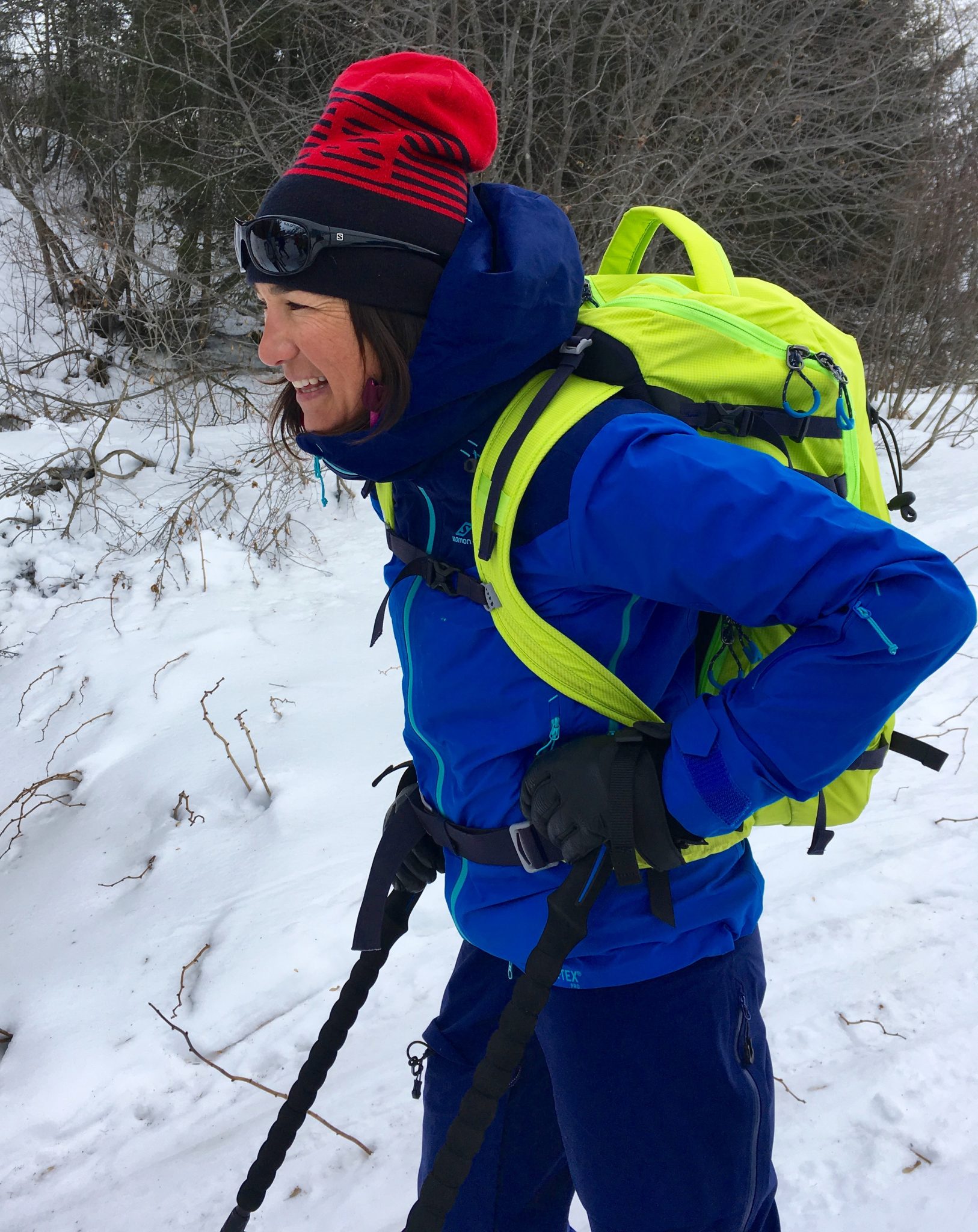 Passage obligatoire pour la pratique, il est nécessaire de ne rien oublier. Deux paires de gants (légers pour la montée, et chauds pour la descente), lunettes de soleil et masque, casque, sonde, pelle, peaux, casse-croûte, et crème solaire! Pas de couverture de survie, ni de carte et boussole pour cette fois car nous sommes bien accompagnées, que la randonnée ne sera ni trop longue ni trop éloignée du domaine skiable, mais à ne pas oublier sinon. Aujourd’hui on se laisse porter.
